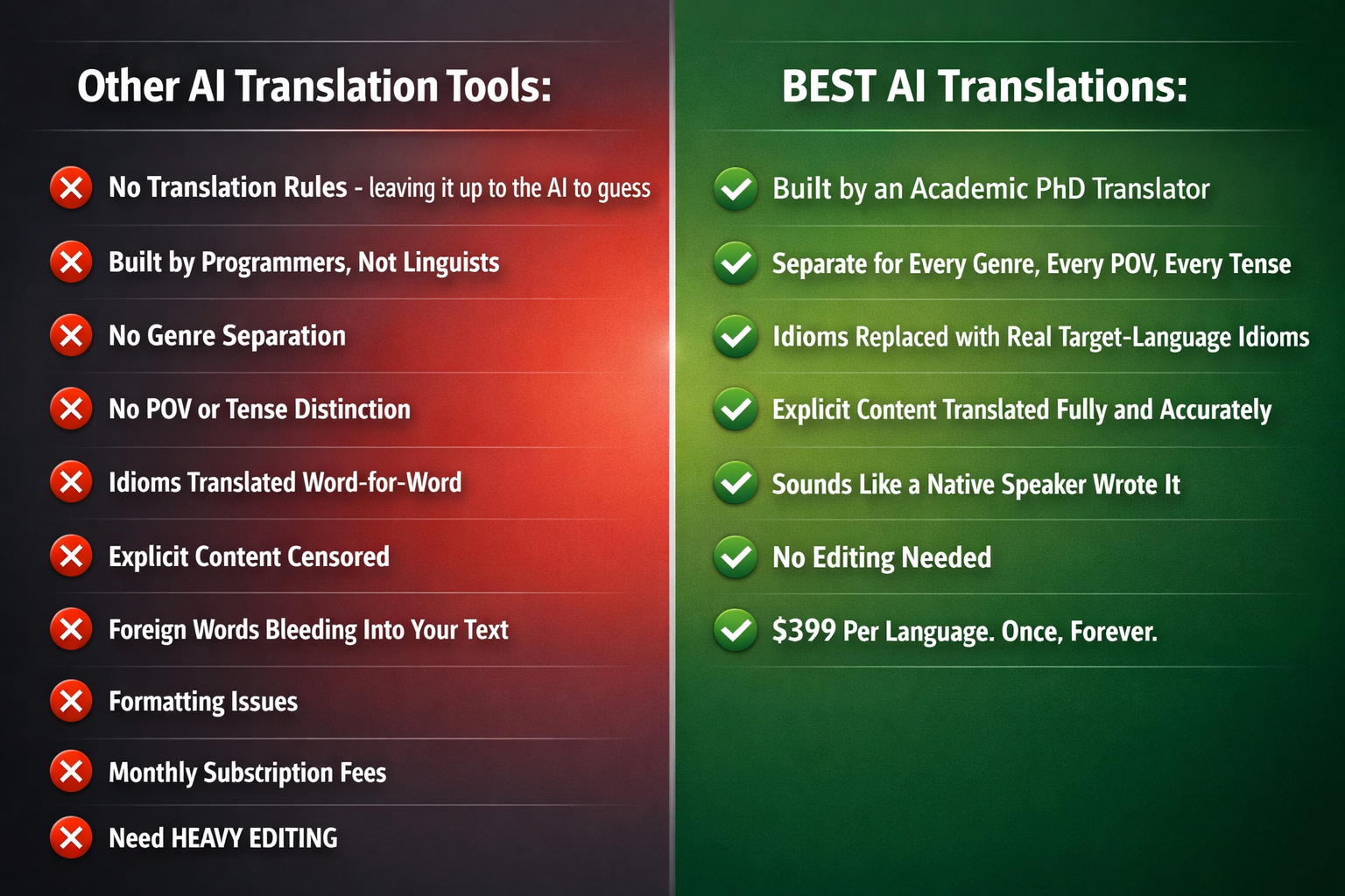 Right now, many authors are paying heavy monthly fees just to access tools that produce robotic, non-native sounding translations which need heavy editing.